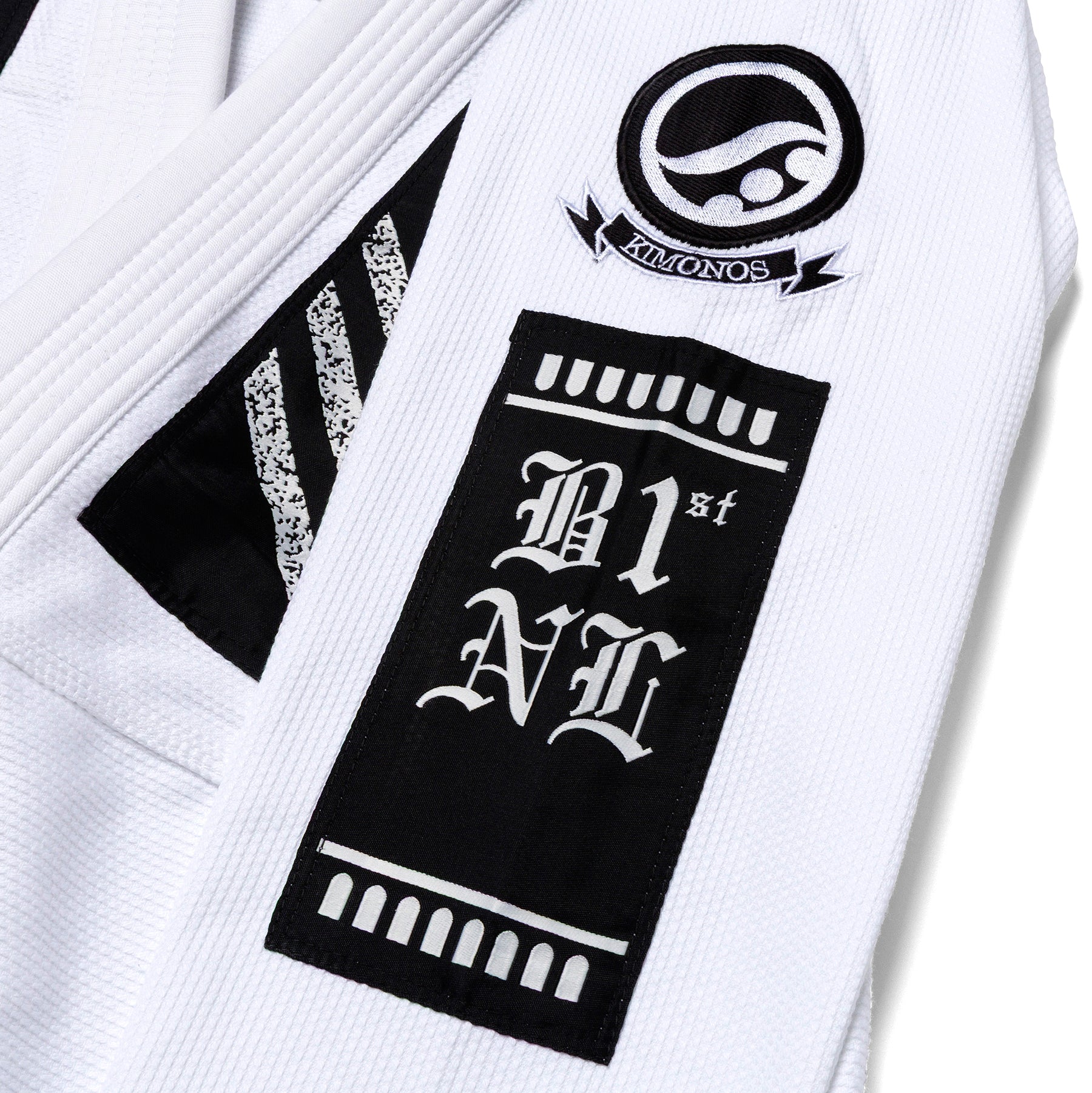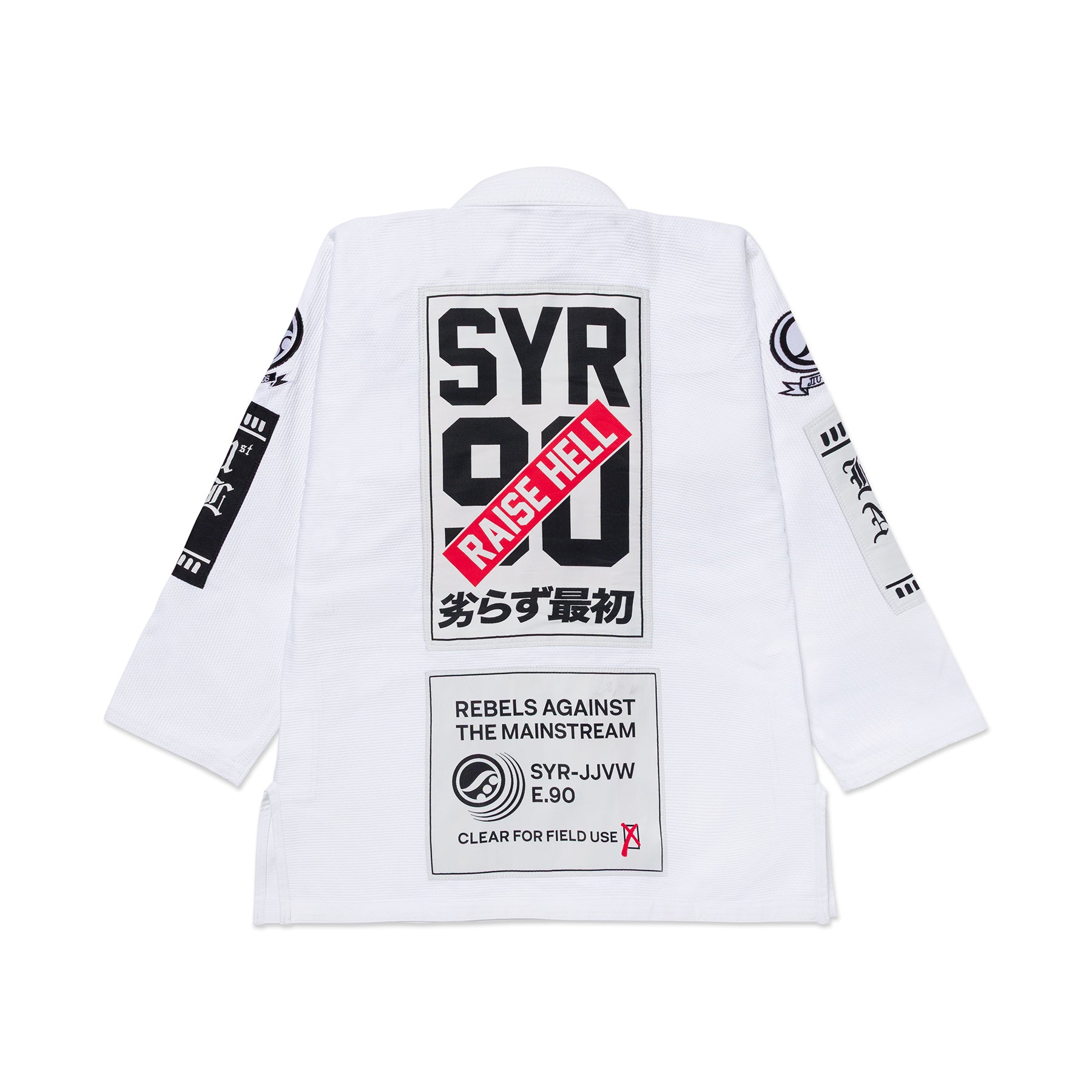 One of the most collected kimonos in Shoyoroll history, returned in updated white and black variants. Constructed in 450 gram pearl weave with 10 ounce canvas pants. Heavy patchwork, signature Beast iconography, and full color woven applications give this edition the same raw, graphic presence that defined the original.
