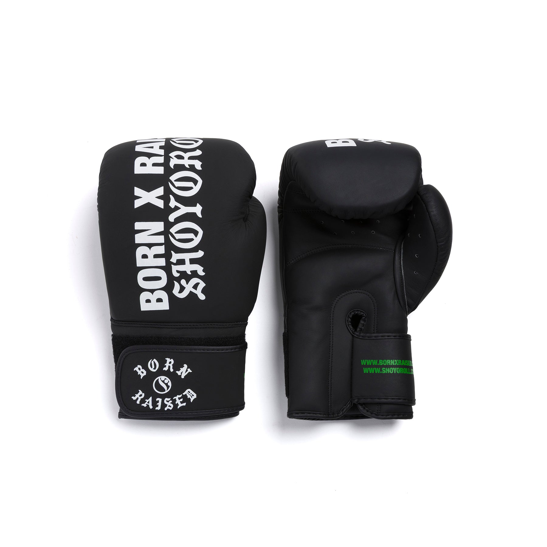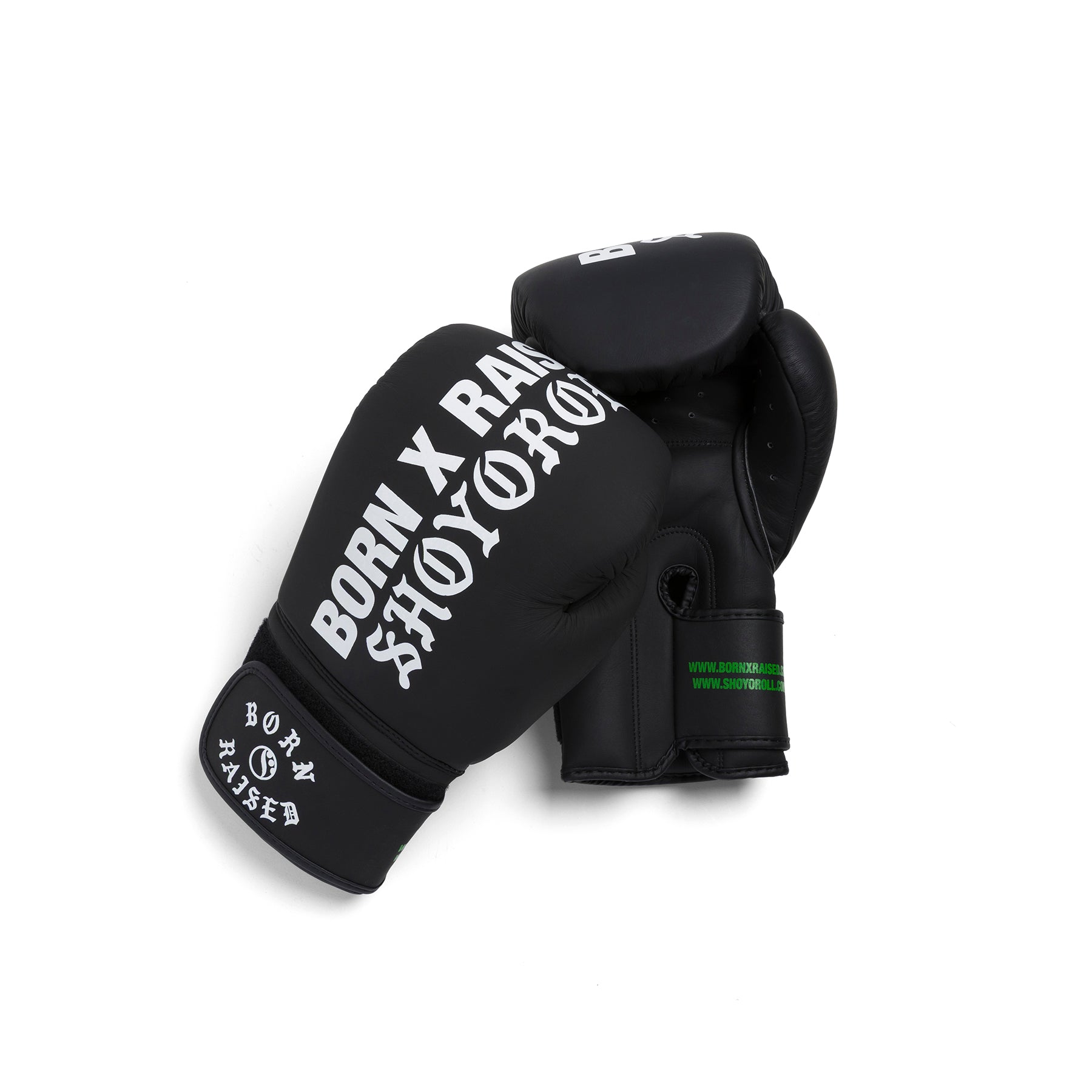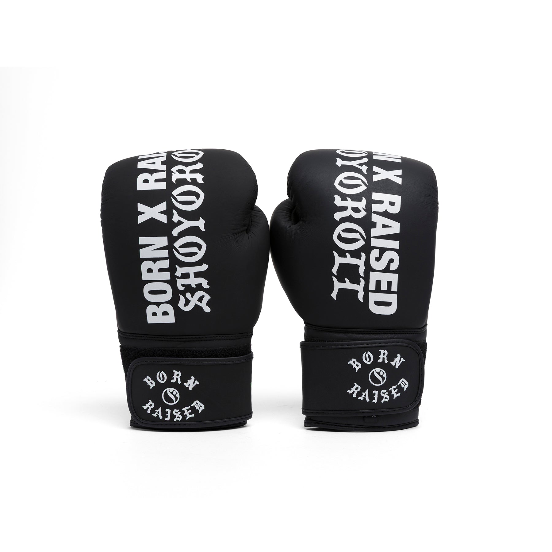 Boxing-style sparring gloves built for everyday training. Constructed with layered foam padding and a secure wrist enclosure for support and protection. Finished with Born X Raised × Shoyoroll collaborative artwork.