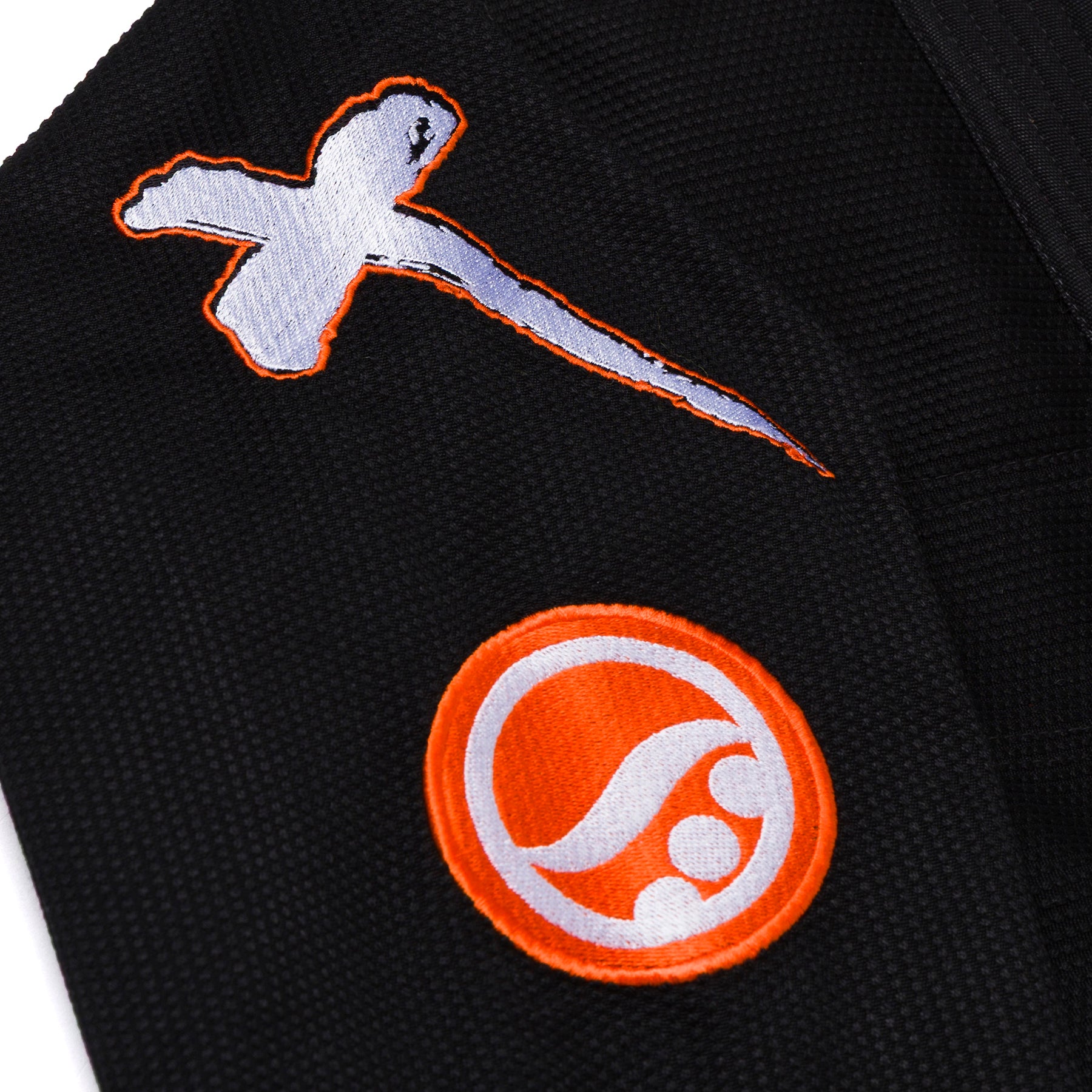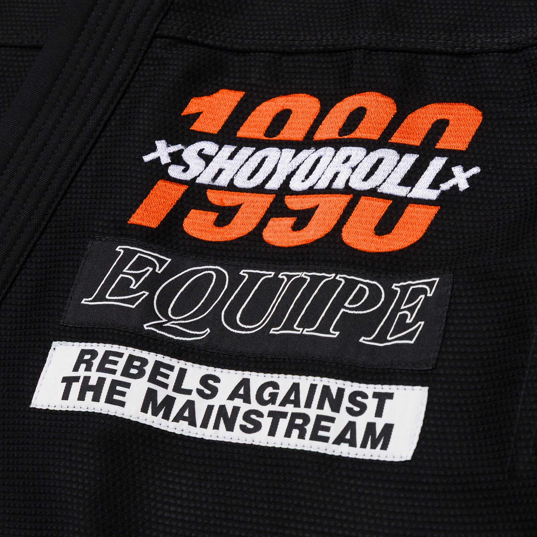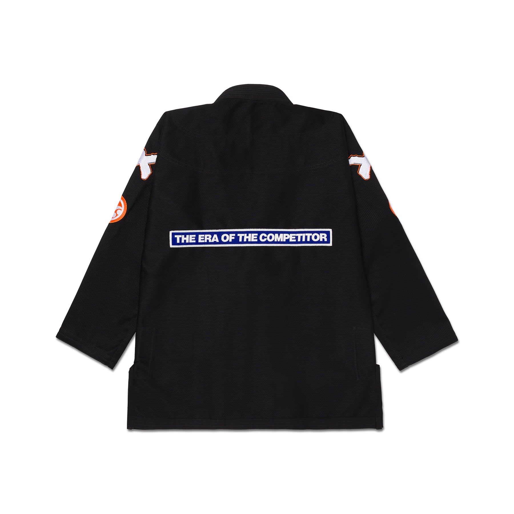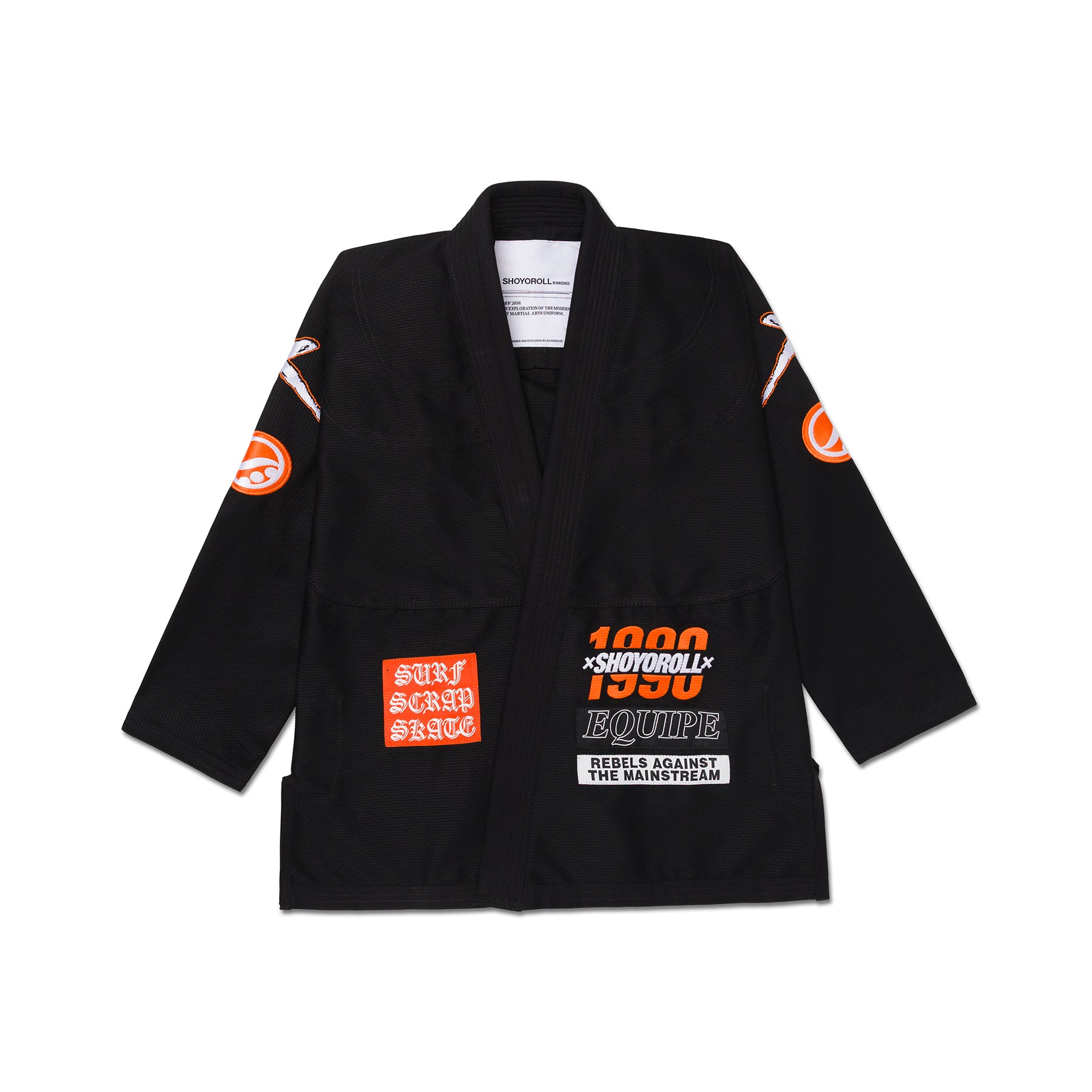 The Moto Kimono takes cues from racing culture and translates them into a uniform built for the mats. Constructed with a 425g pearl weave jacket and 10oz canvas pants, it balances durability and mobility with a clean competition cut. Oversized patchwork in orange, blue, black, and white calls back to speed, movement, and team insignia. Reinforced stitching and a full elastic waistband on the pants complete the build, making the Moto a distinct entry within our kimono line.